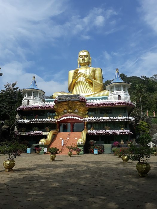 Chrám Dambula - krásný jeskyní komplex, který je od roku 1991 zapsán do světového dědictví UNESCO. Hned v úpatí hory nás uvítal obrovský zlatý Budha, proto je také chrámu přezdíváno Golden Temple. Od něj se stoupá prašnou cestou, která se mění pod vrcholkem hory ve schodiště. V době naší výpravy tropické stromy u cesty právě krásně kvetly a cestou se nám naskytly překrásné výhledy na tropické lesy všude kolem. Po vstupu do chrámu na vrcholku hory vstoupíte do komplexů jeskyní, kterému se přezdívá Cave temple tedy Jeskynní chrám, který ukrývá velké množství Budhů v nejrůznějších podobách a pozicích, další jsou vyobrazeny v malbách na stěnách všude kolem a některé jsou staré více jak dva tisíce let. Je to místo, které má silného ducha a to i díky místním lidem, kteří se zde modlí u každé sochy a pokládají k nim obětiny v podobě krásných květin.