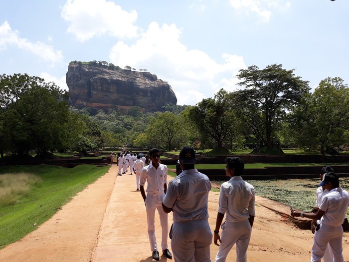 Dalším místem, které mě uchvátilo byla skalní pevnost Sigirya. Je to vlastně posvátná skála, která leží uprostřed rovin a říká se jí Lví skála. Je také zapsána do seznamů UNESCO. Už z dálky zaujme svou jedinečností v okolní krajině, která je rovná jako placka, ze které najednou do výšky takřka 200 metrů ční skoro kolmá, krásně vybarvená skála. Ale není to jen obyčejná skála, jsou to pozůstatky královského paláce. Král Kashyapa jej v 5. století nechal vybudovat právě na vrcholku této skály ze strachu před svým bratrem, kterého se pokusil zabít. Bylo zde důmyslně vybudováno množství paláců, vyhlídek, zadržovacích nádrží na vodu a opevnění. Pod skálou byly vybudovány rozsáhlé zahrady, ve kterých byly postaveny dokonce fontány, které fungovaly na principu tlaku. Zbytky fontán jsou zde k vidění dodnes. Nahoru na úplný vrchol Lví skály vede velké množství schodů do kterých se vstupuje mezi lvími tlapami vytesanými do kamene, nahoře jsou vidět pozůstatky zdiva paláců a je odtud krásný výhled široko daleko.