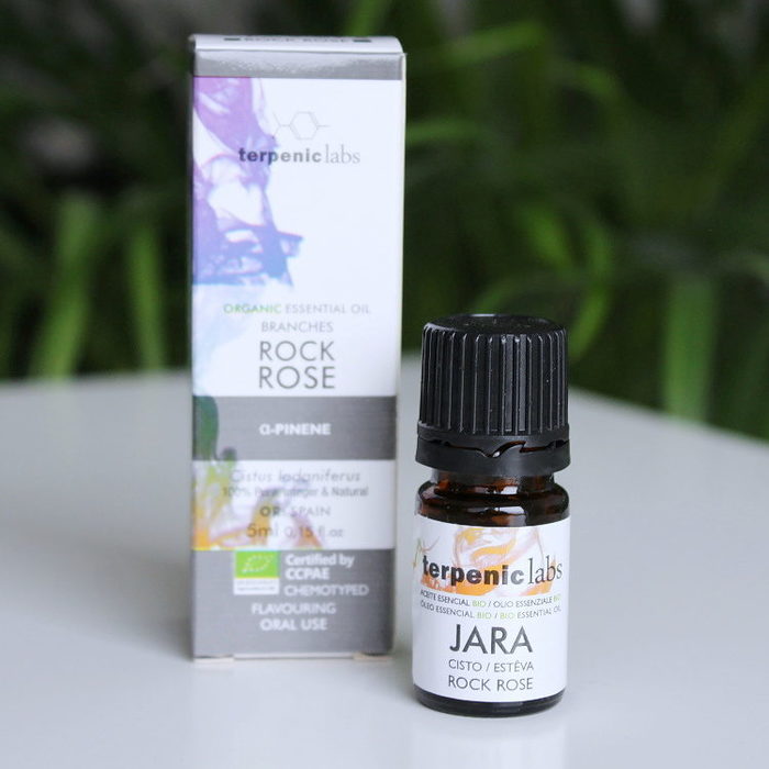 100% čistý přírodní BIO esenciální olej z cistu španělské značky Terpenic pro vnější i vnitřní užití, s potravinářským certifikátem.